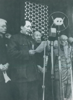 下午三時,在北京天安門廣場隆重舉行中華人民共和國開國大典。毛澤東宣讀《中華人民共和國中央人民政府公告》,向全世界宣告中華人民共和國中央人民政府成立。公告指出:“本政府為代表中華人民共和國全國人民的唯一合法政府。凡愿遵守平等、互利及互相尊重領土主權等項原則的任何外國政府,本政府均愿與之建立外交關系。”朱德宣讀《中國人民解放軍總部命令》。命令要求全軍指戰員迅速肅清國民黨軍隊的殘余,解放一切尚未解放的國土,同時肅清土匪和其他一切反革命匪徒,鎮壓他們的一切反抗和搗亂行為。《公告》收入《毛澤東文集》第六卷;《命令》收入《朱德選集》。